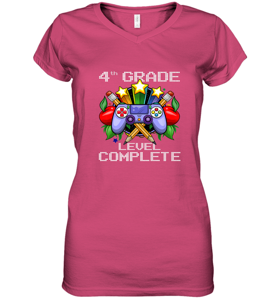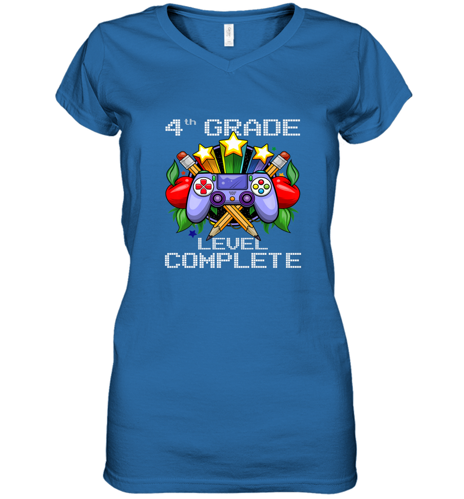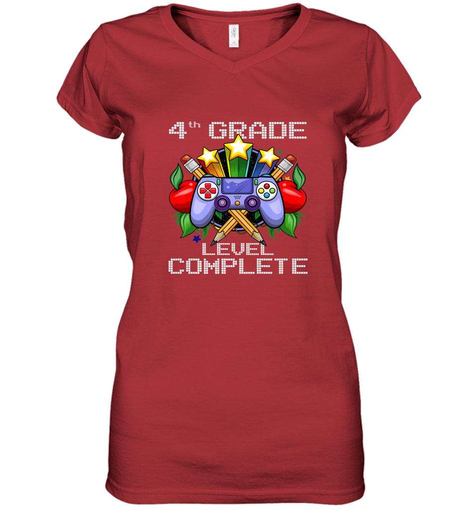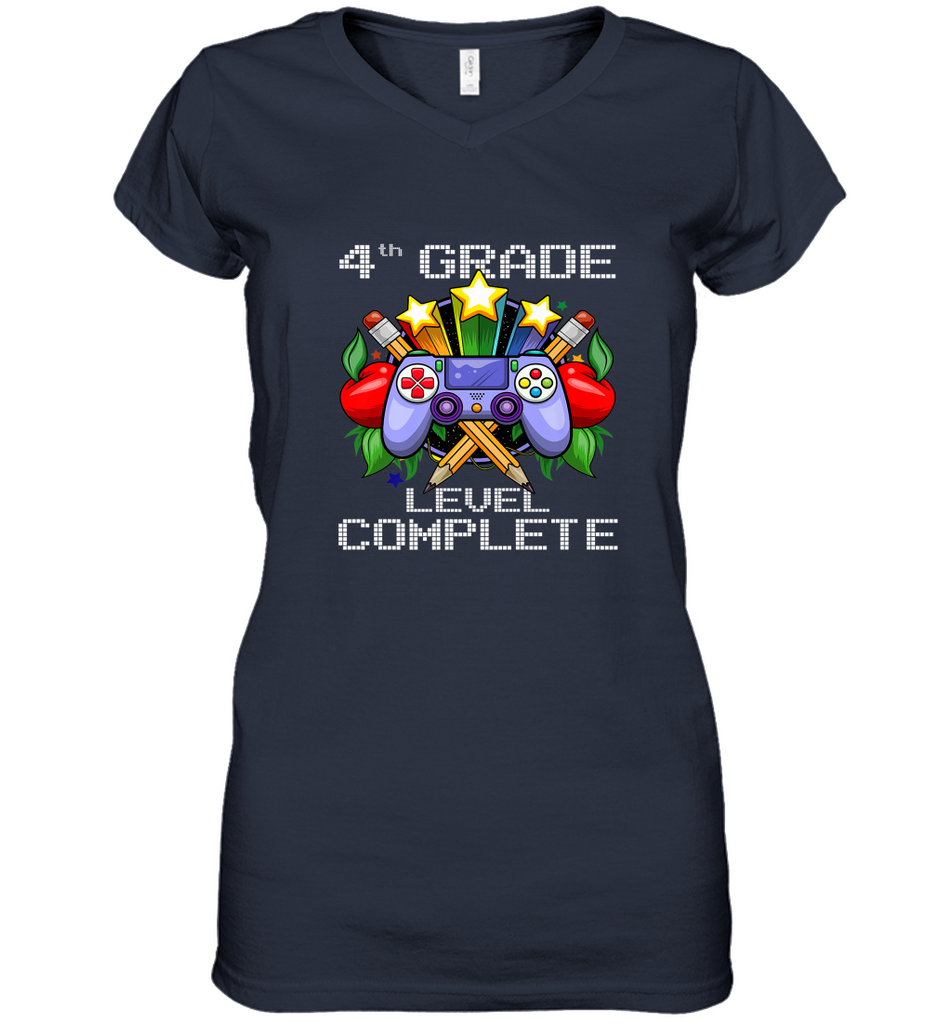 4th Grade Level Complete Back To School Gift Boys Girls Women's V-Neck T-Shirt