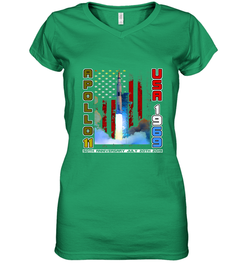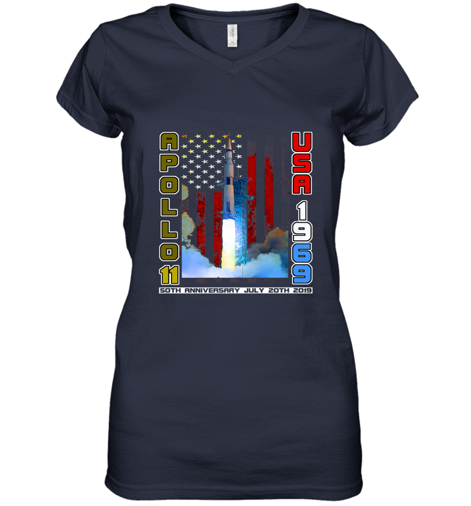 Apollo 11 50th Anniversary Moon Landing 1969 2019 Science Women's V-Neck T-Shirt