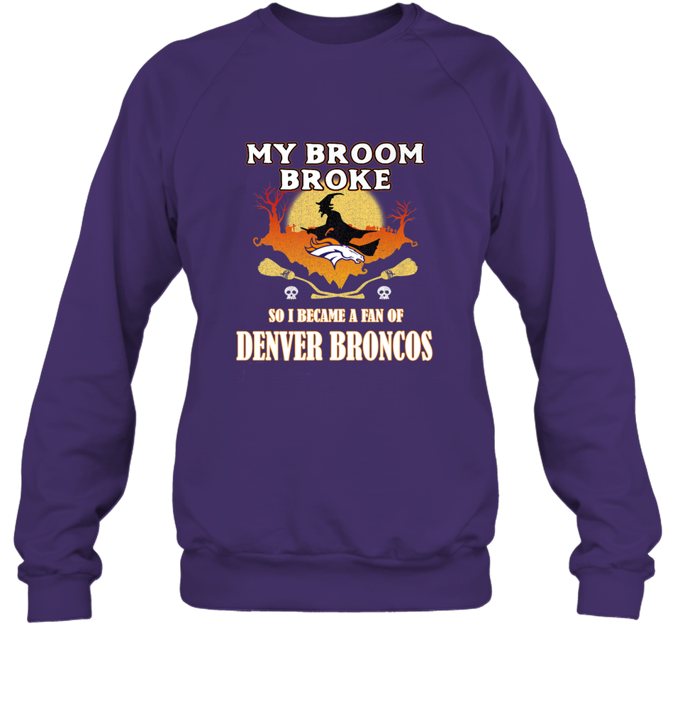 Broom Broke So I Became A Fan of Denver Broncos NFL Halloween Costume Crewneck Sweatshirt