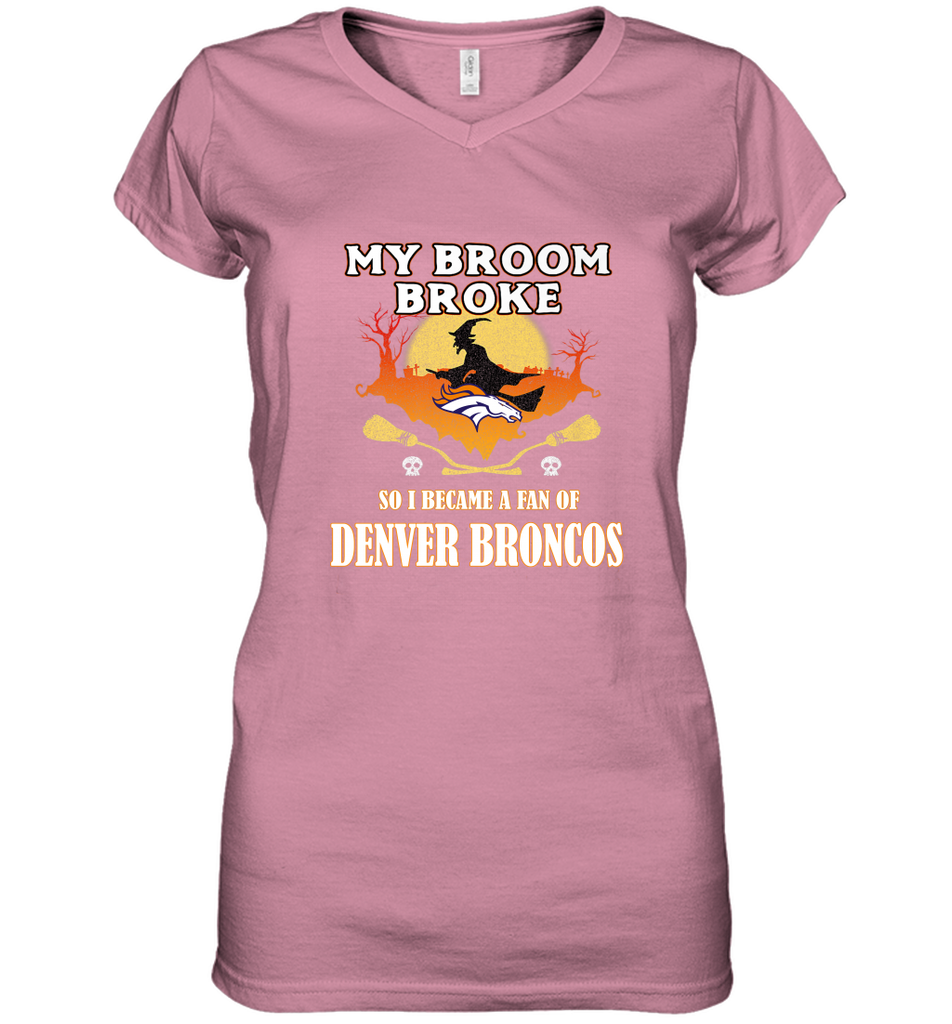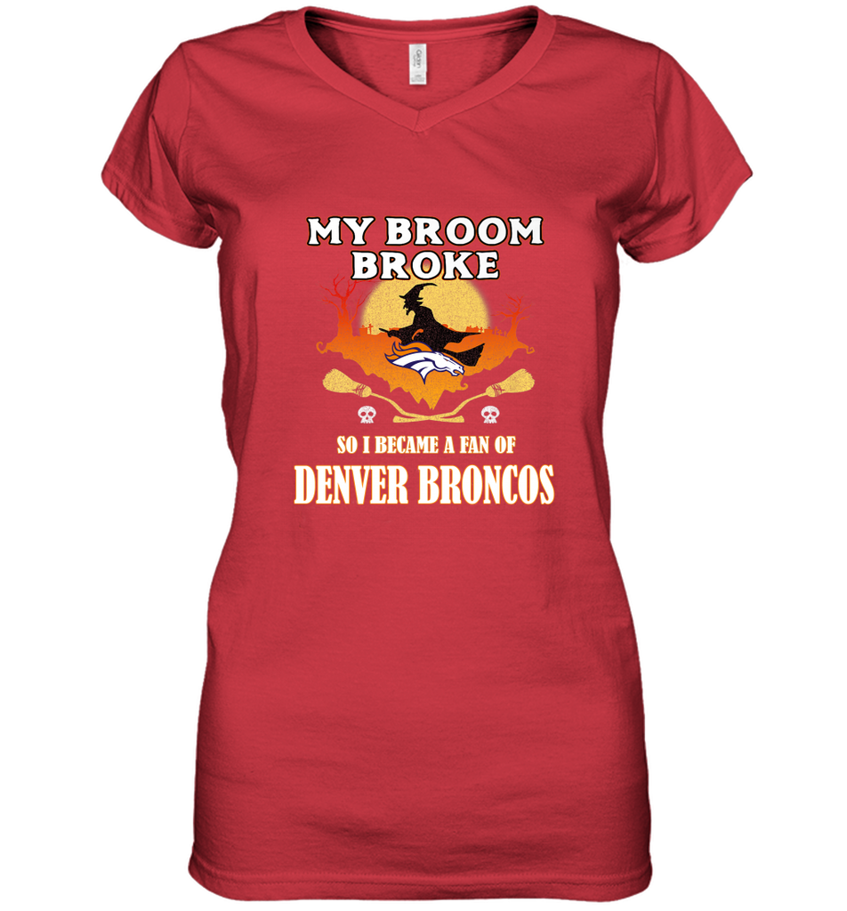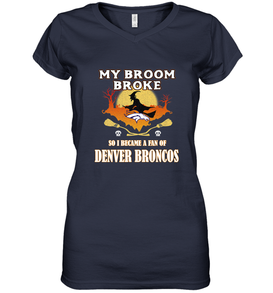 Broom Broke So I Became A Fan of Denver Broncos NFL Halloween Costume Women's V-Neck T-Shirt
