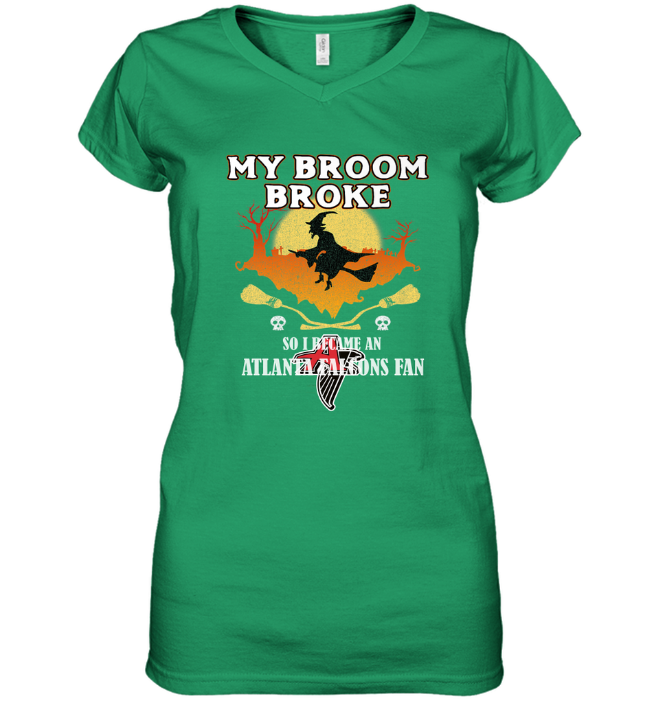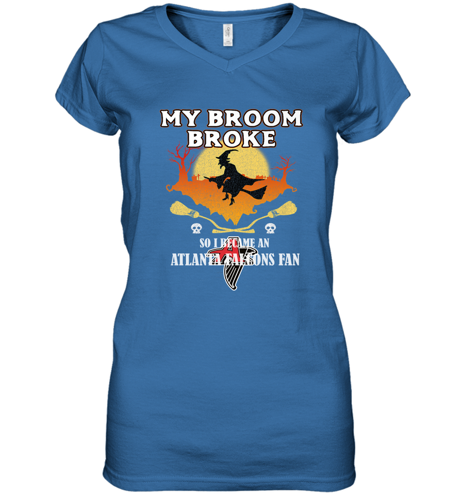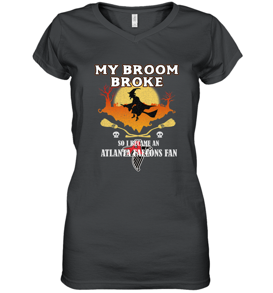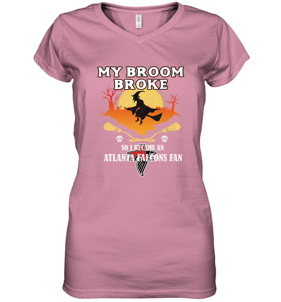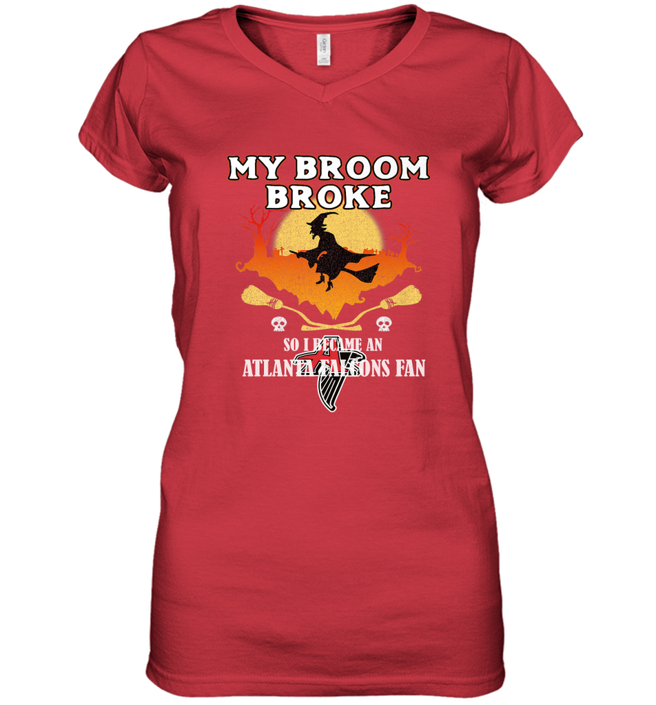 Broom Broke So I Became An Atlanta Falcons Fan NFL Halloween Costume Women's V-Neck T-Shirt