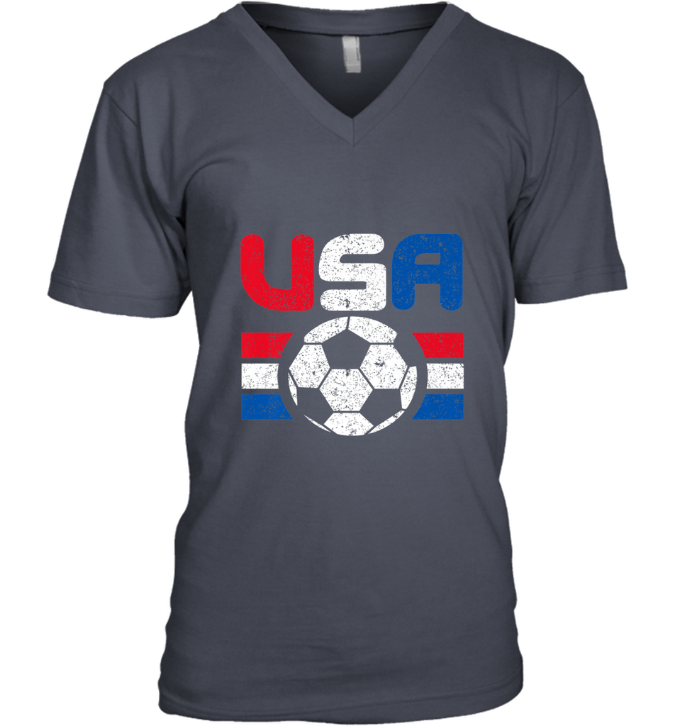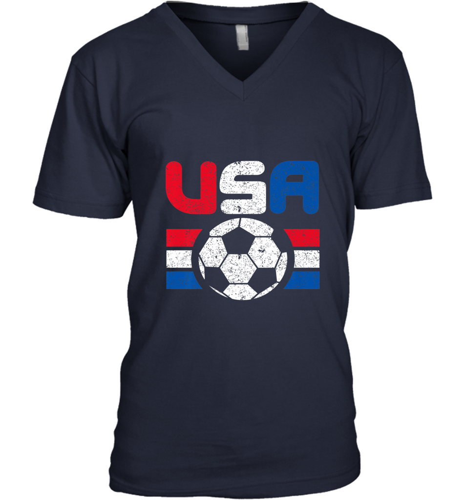 Distressed Red, White and Blue Soccer Flag Shirts of the USA Men's V-Neck