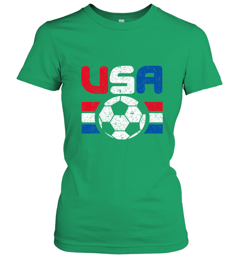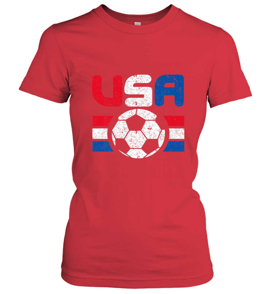 Distressed Red, White and Blue Soccer Flag Shirts of the USA Women's T-Shirt
