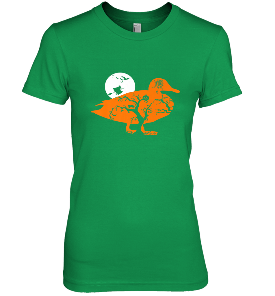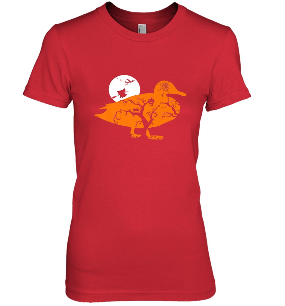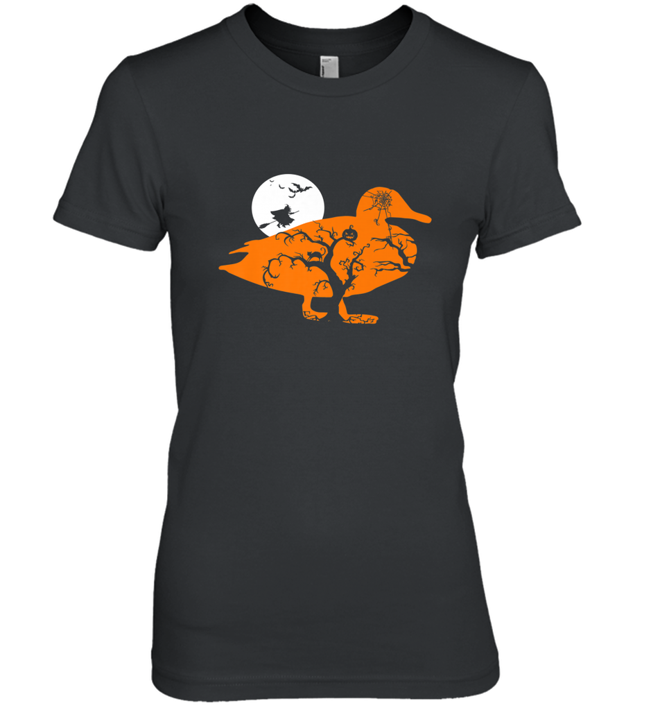 Funny Gift Witch Bat Web Moon Pumpkin Tree in Halloween Duck Women's Premium T-Shirt