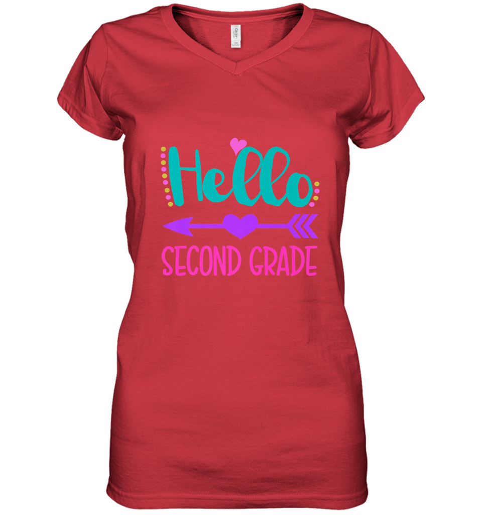 Hello Second Grade 2nd Grade Teachers Students Gift Women's V-Neck T-Shirt