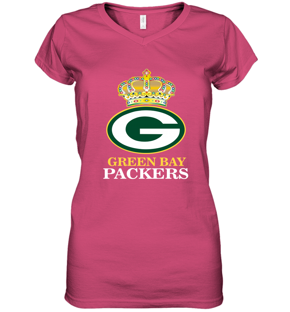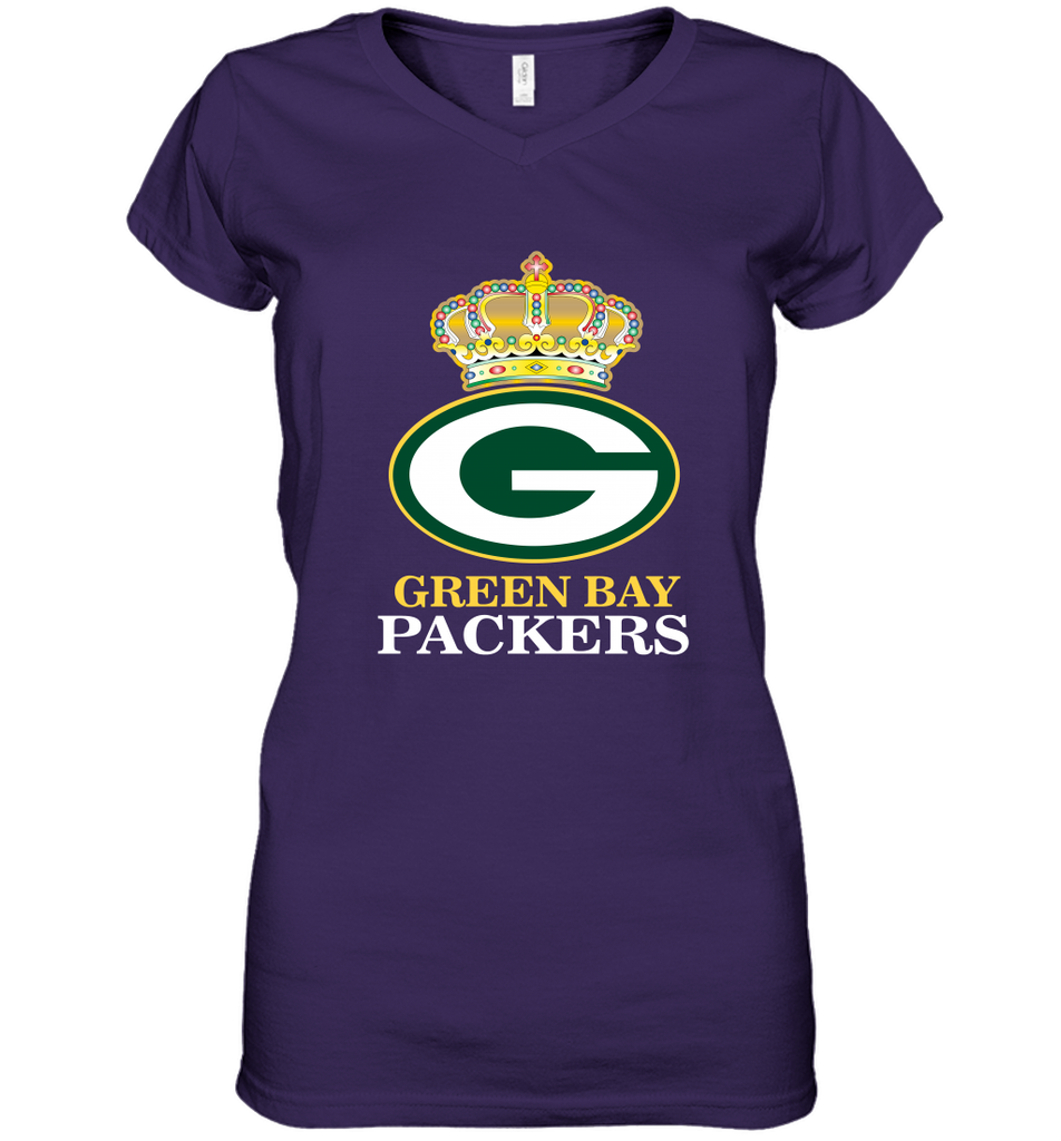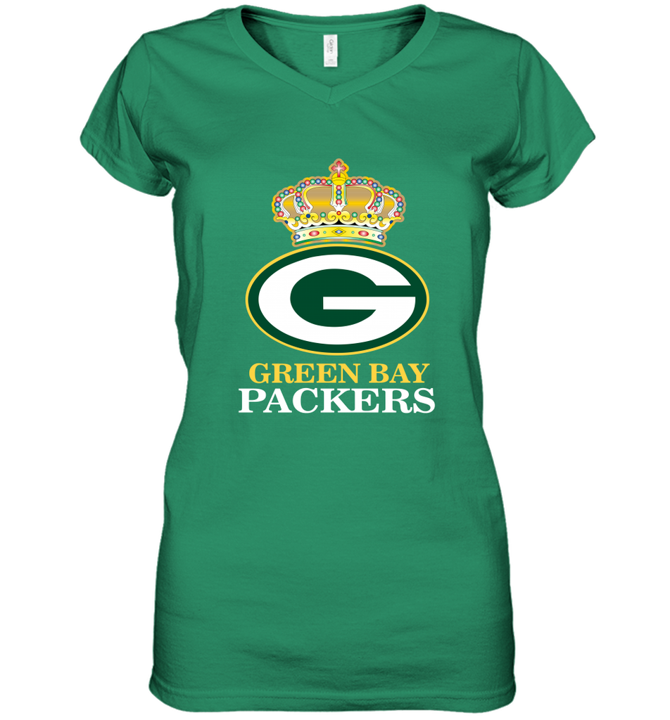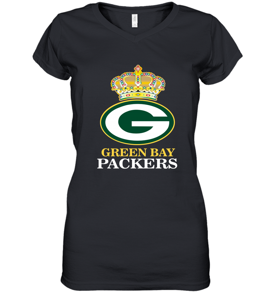 NFL Green Bay Packers Logo Champion Crown Women's V-Neck T-Shirt