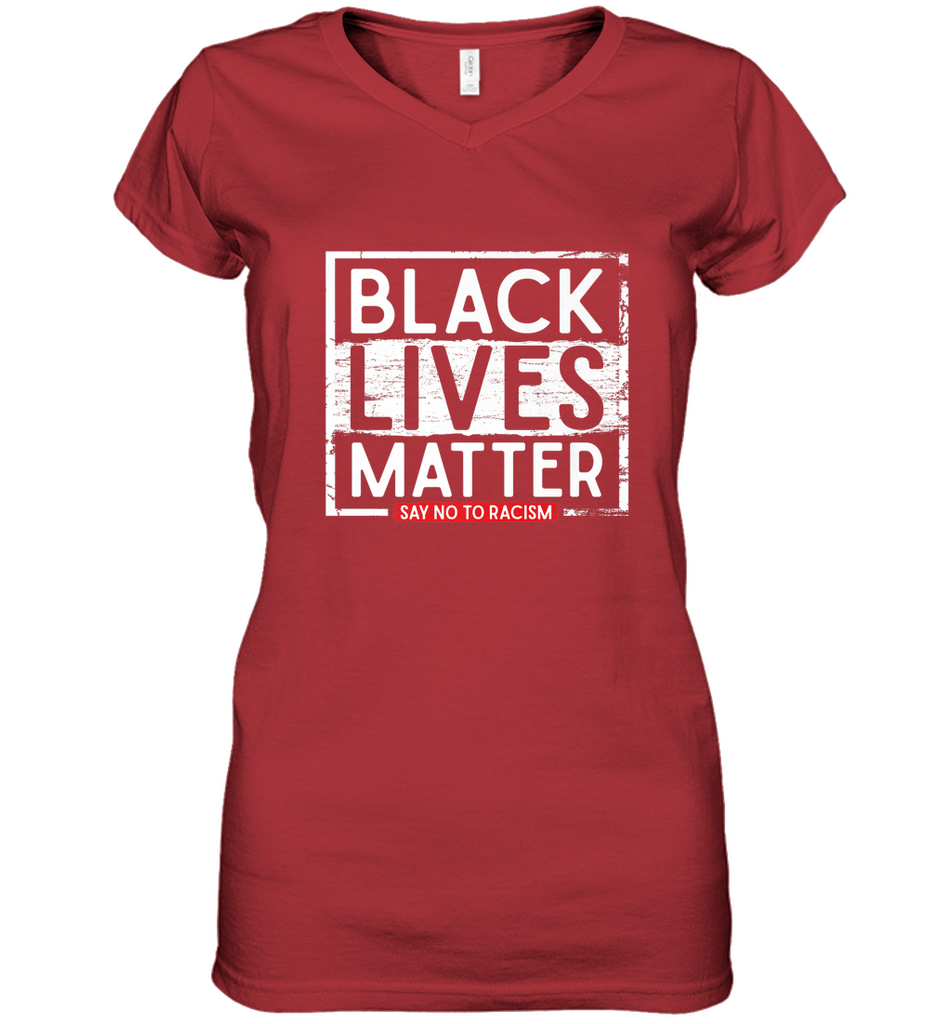 Say Black Lives Matter and No To Racism Human Rights Slogan Women's V-Neck T-Shirt