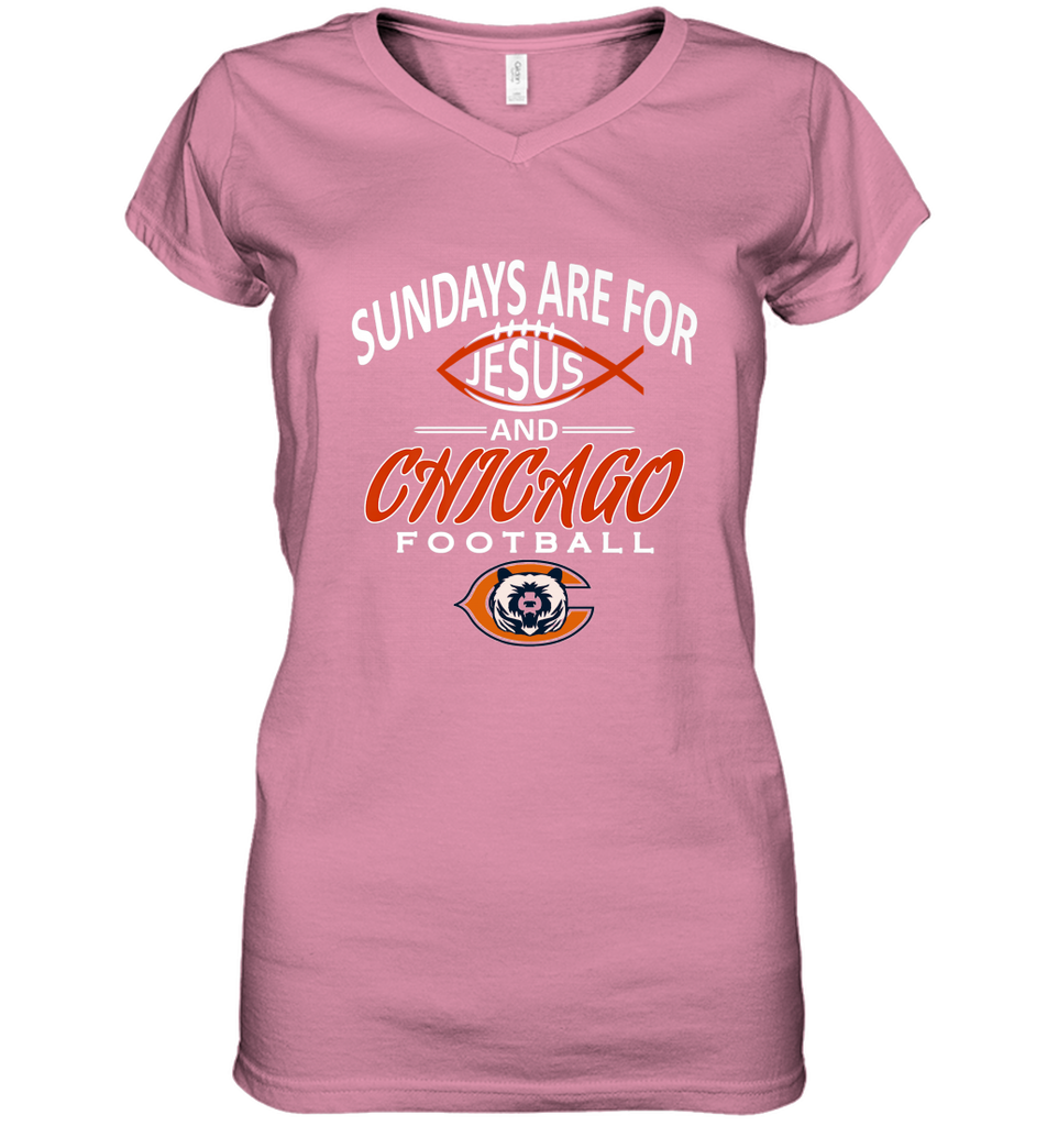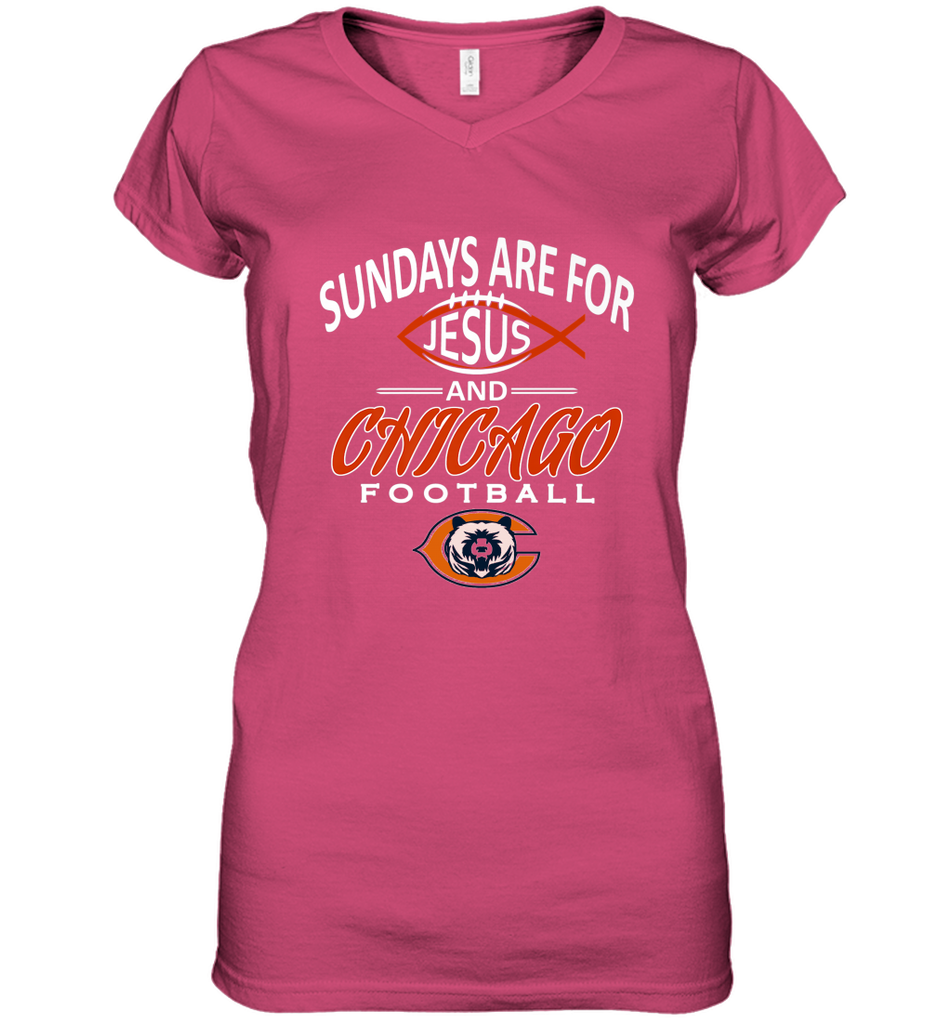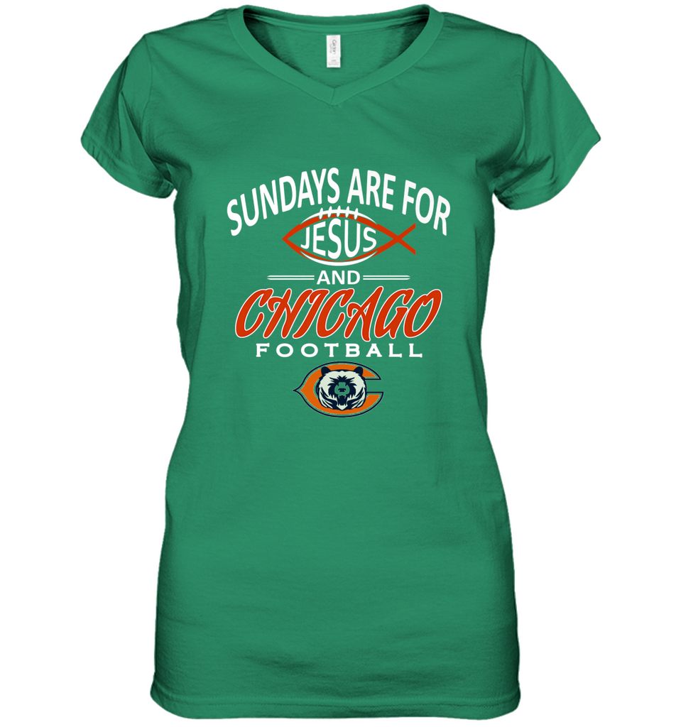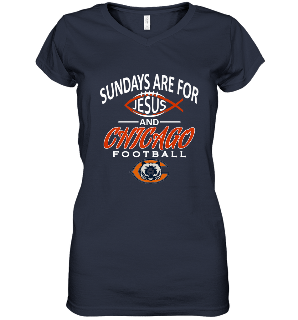 Sundays Are For Jesus and Chicago Funny Christian Football Women's V-Neck T-Shirt
