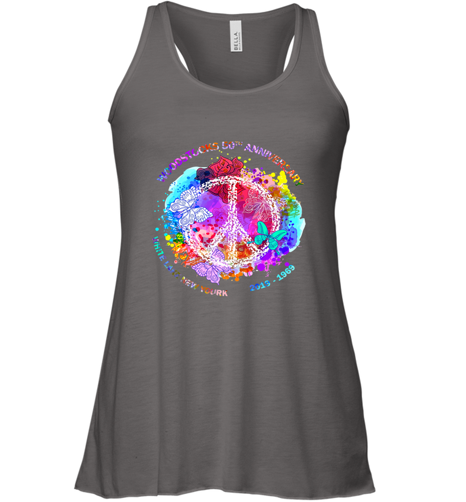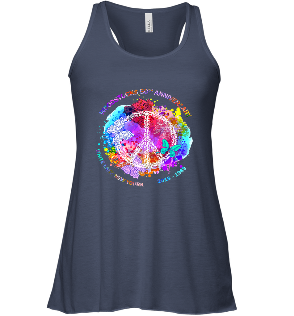 Woodstocks 50th Anniversary Peace Love tee Women's Racerback Tank